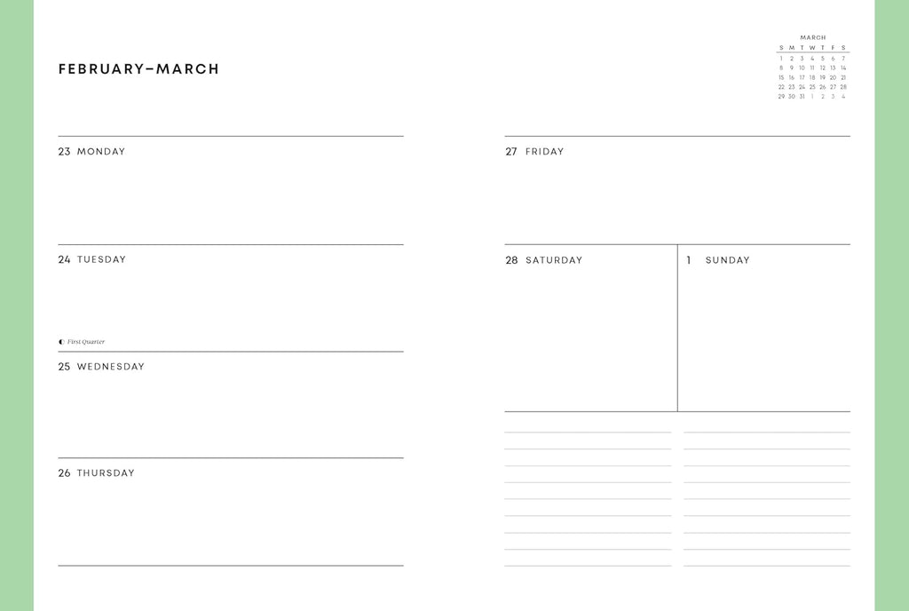 ENCUADERNACIÓN PLANA: Este calendario de compromiso se abre en plano para facilitar la escritura y funciona a la perfección como diario y cuaderno para anotar pensamientos, planes e ideas.